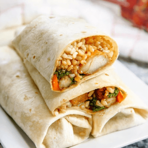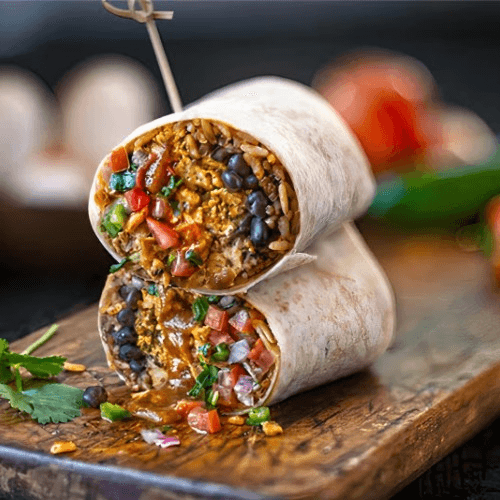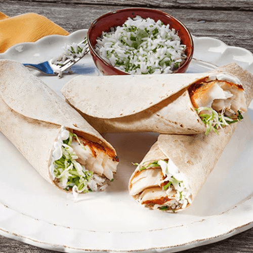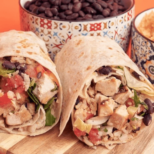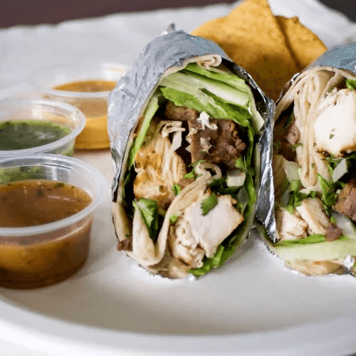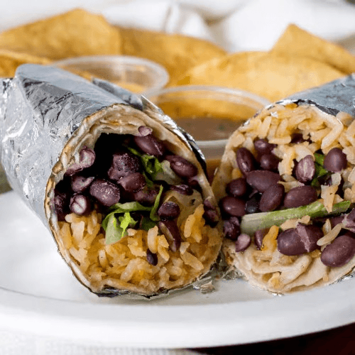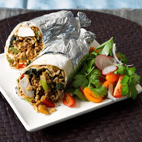 Spanish rice, black beans, fresh salsa, lettuce and garlic lime sauce.