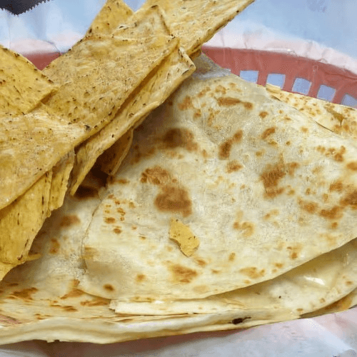 Shredded Cheddar and Monterrey Jack cheese, refried beans, jalapenos, fresh salsa, sour cream, and guacamole.