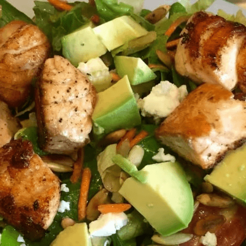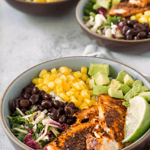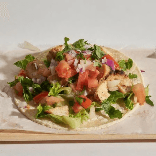 Chicken, Romaine lettuce, black beans, fresh salsa, and served at a crispy tortilla shell. Sour Cream and Cheese.