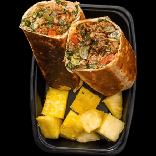 Made with bell peppers, white onions, and Sauteed with lemon garlic sauce. Rice, black beans, lettuce, artichokes.