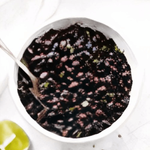 Rich and hearty black beans, seasoned with herbs and spices, served in a half-pint portion.