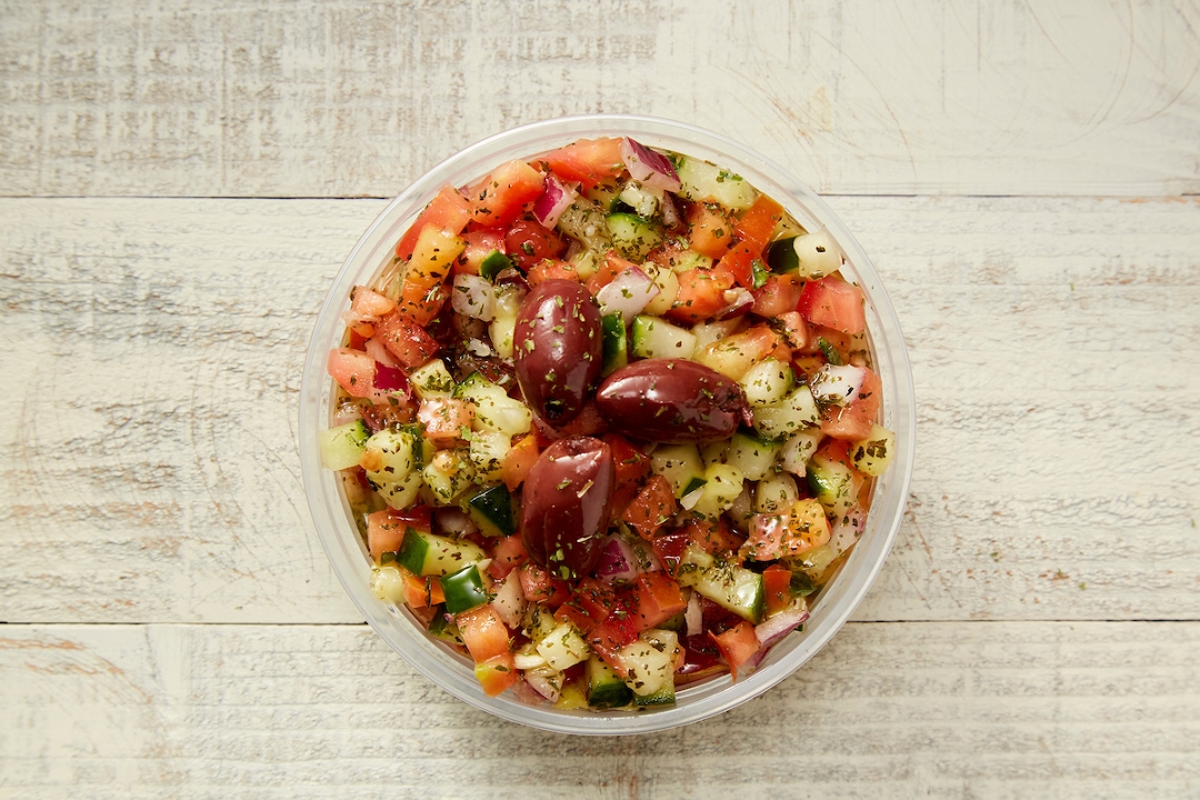 Lettuce, Tomatoes, Cucumbers, Red Onions, Bell Peppers, Sliced Lemons, Fresh Mint & Za'atar Pita Chips. Served with Summac Dressing.